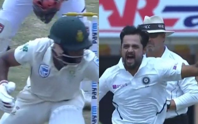 ఇన్నింగ్స్ 29వ ఓవర్ వేసిన నదీమ్ బౌలింగ్లో క్రీజు వెలుపలికి వచ్చి బంతిని డిఫెన్స్ చేయబోయిన బవుమా (32: 72 బంతుల్లో 5×4) బంతి అందకపోవడంతో స్టంపౌటయ్యాడు. నదీమ్కి టెస్టు కెరీర్లో ఇదే తొలి వికెట్కాగా.. బవుమా ఔటైన తీరు నవ్వు తెప్పిస్తోంది. సోమవారం తొలి సెషన్లో బవుమా క్రీజు వెలుపలికి వచ్చి ఆడేలా నదీమ్ వరుసగా ఊరించే బంతులు విసిరాడు. జార్ఖండ్కి చెందిన నదీమ్కి రాంచీ గ్రౌండ్ సొంత మైదానం.